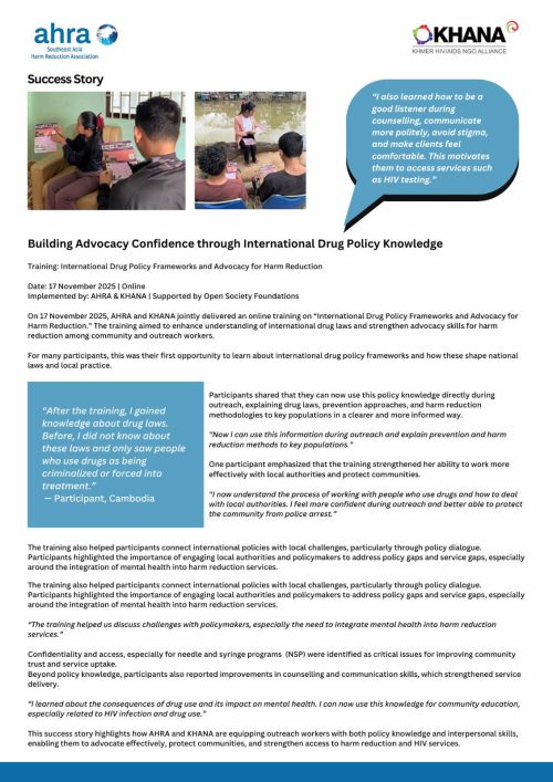 Southeast Asia Harm Reduction Association (AHRA) Fact Sheet