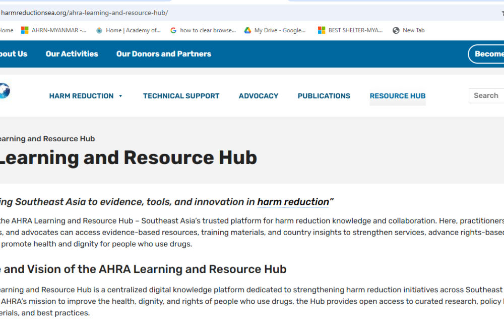We are pleased to share the Southeast Asia Harm Reduction Association (AHRA)’s Learning and Resource Hub; an online platform designed to support practitioners, advocates, researchers, and community organizations working on harm reduction across the region.